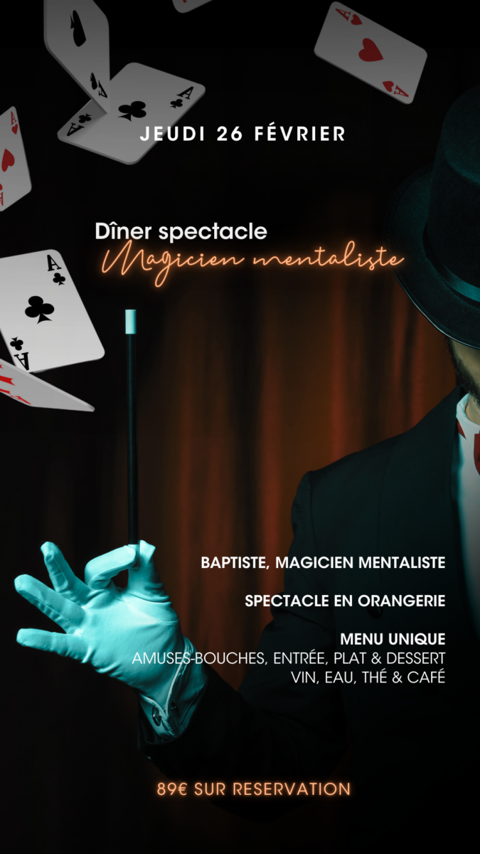 JEUDI 26 FÉVRIER : DÎNER SPECTACLE MAGICIEN MENTALISTE I MENU